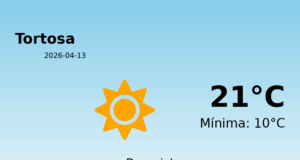 Previsió Meteorològica per a Tortosa: 15 d'abril de 2026 Avui, els residents de Tortosa poden esperar un dia amb temperatures agradables i condicions meteorològiques majoritàriament...