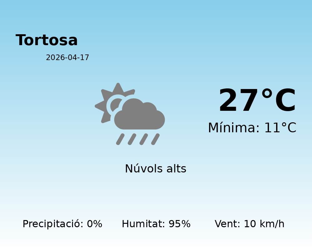 En resum, el dia promet ser ideal per gaudir de l’aire lliure, aprofitant les temperatures agradables i l’absència de pluja. Recordeu hidratar-vos bé, especialment tenint en compte els alts nivells d’humitat. Gaudiu de la magnífica jornada a Tortosa!