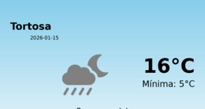 El temps avui 15 de Gener de 2026 a Tortosa segons...